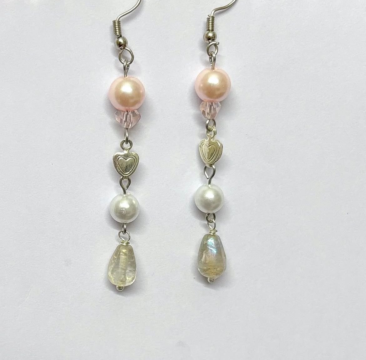 Pastel star pendant , heart-shaped drop earrings showcasing a soft girl, cosmic aesthetic |