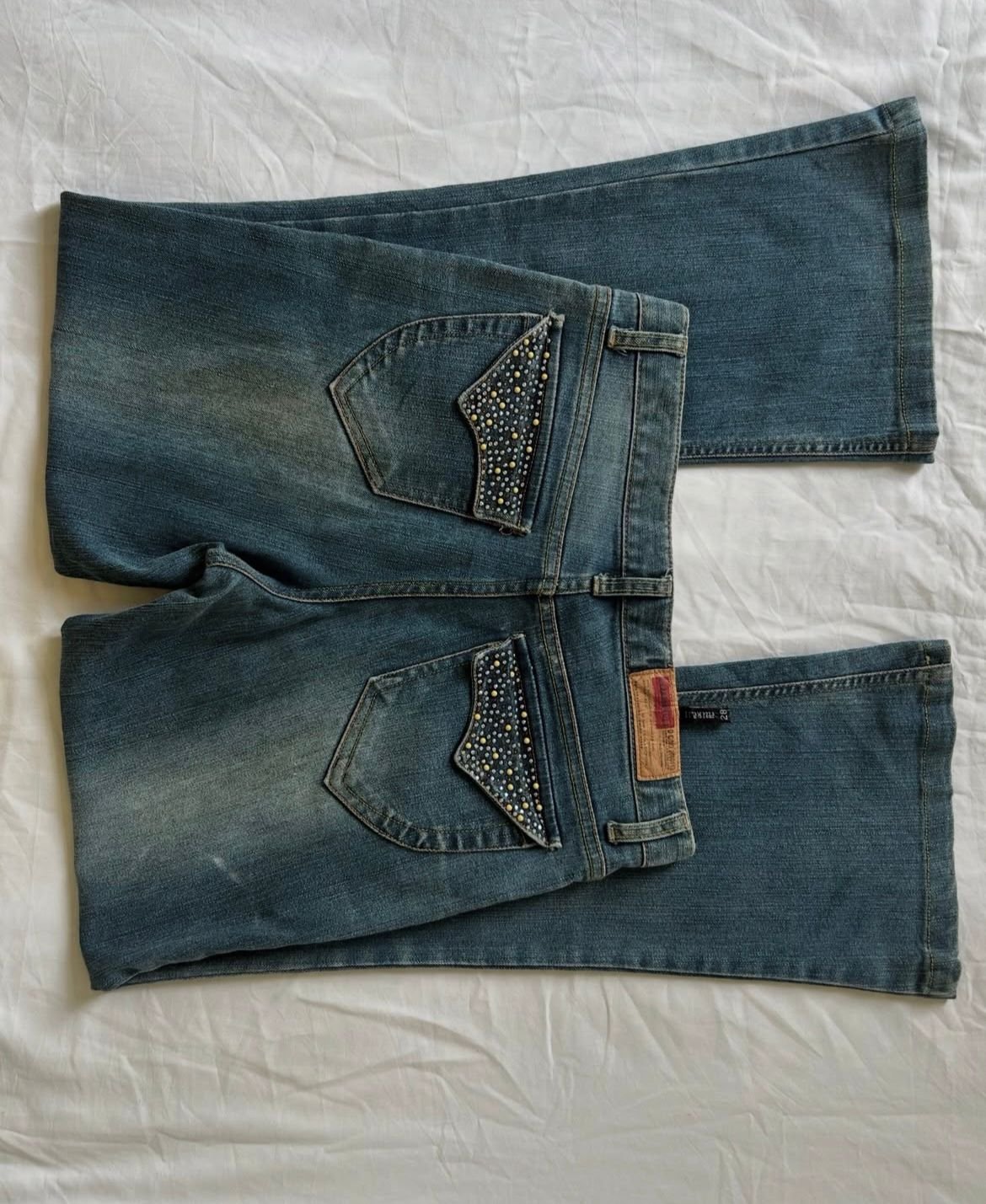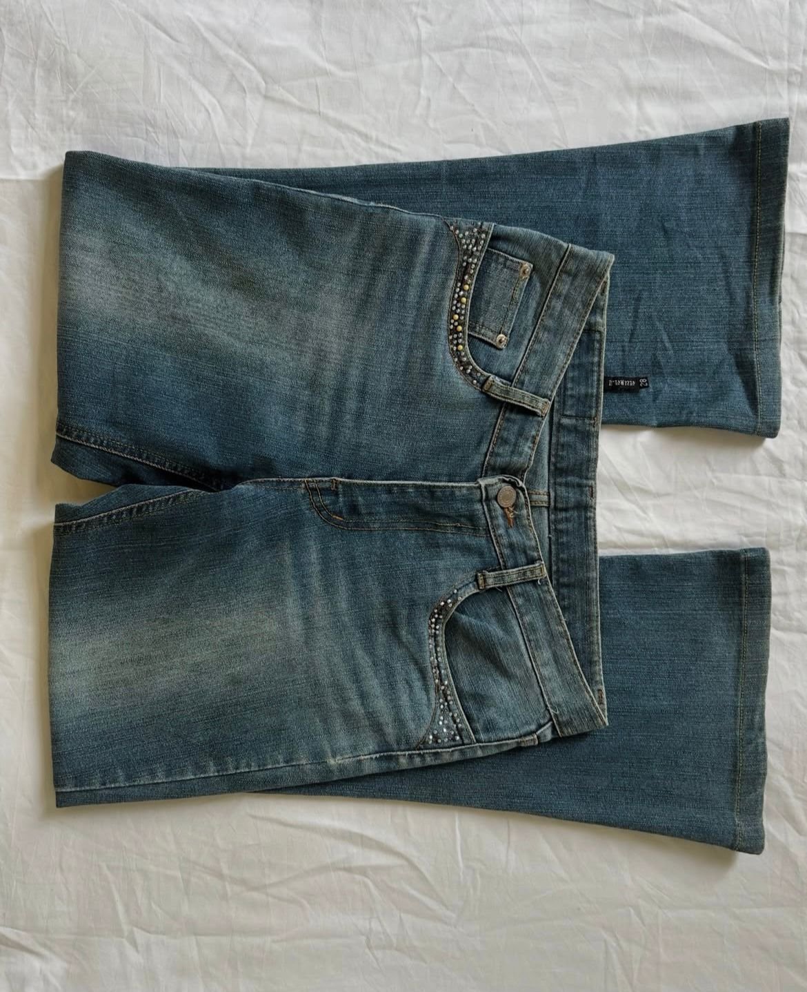 Step back into the iconic Y2K era with RetroFlare Vintage Bootcut Jeans. Designed in a soft faded blue hue with a slightly lighter wash, these low-rise jeans bring effortless nostalgia to your wardrobe. The flattering bootcut silhouette elongates your legs, while delicate stone embellishments on the pockets add a subtle sparkle for that signature vintage vibe.